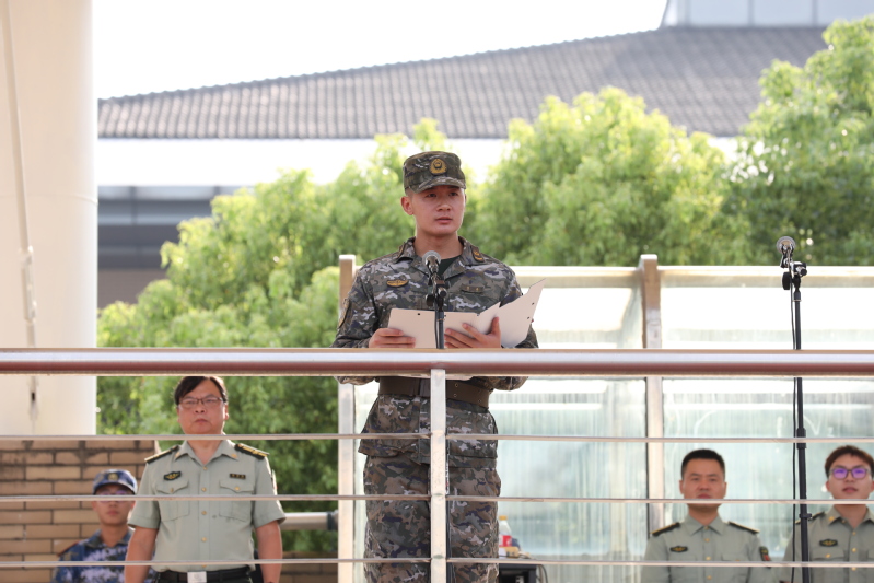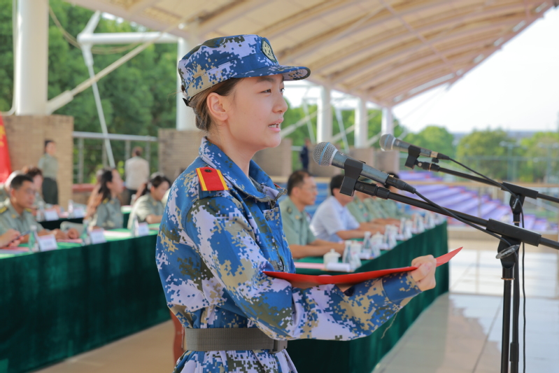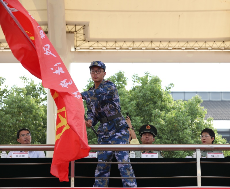 吴高议向参训学生代表授旗,严诚迎请教官入列。来自一营三连七排教官魏磊、五营八连三十九排学生徐艺嘉分别作为教官代表、参训学生代表发言。