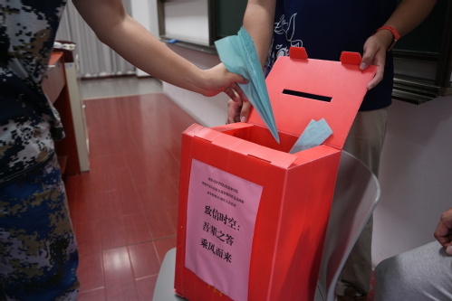 学院为同学们准备了详实的抗日英雄事迹材料,涵盖从东北抗联到南方新四军,从正面战场到敌后战场的五十位代表性英雄。狼牙山五壮士宁死不屈、八女投江英勇就义、杨靖宇将军胃里只有枯草树皮的事迹,让在场同学无不动容。在“致信时空”环节中,同学们从五十位抗日英雄中选取一位,在纸飞机上写下真挚的缅怀与崇高的敬意。大家手持纸飞机与英雄展开跨越时空的心灵对话,寄托思念,传递信仰。