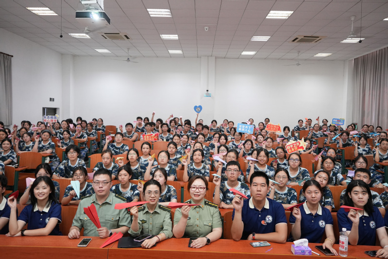 2025级新生代表李泽楷在发言中分享了其太爷爷与太奶奶的抗战经历,深切体会到胜利背后的艰难与牺牲。他慷慨激昂地表示:“手执这架纸飞机,犹如握紧历史的接力棒。我们将把抗战精神融入专业学习,以法治信念守护公平正义,以此告慰先烈之英灵。”