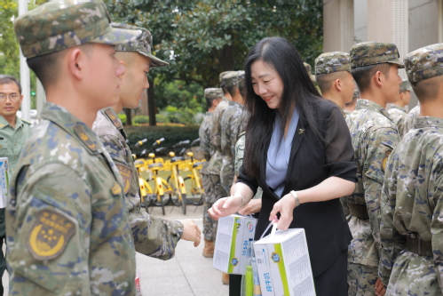 2025年9月10日上午,在第41个教师节来临之际,校党委书记葛卫华,校党委副书记、校长刘晓红等学校领导前往2025级新生军训场地,亲切看望带训教官和参训师生,并送上慰问品。校领导高志刚、郑少华、毛军权等陪同慰问。