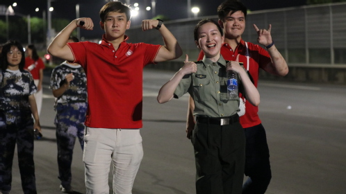 随着校党委副书记、副校长、军训团政委高志刚的一声令下,19时,军训拉练正式开始。2500余名师生从上政出发,浩浩荡荡的队伍行进在路上宛如一条巨龙,闪耀青春风采,散发奋进气势,汗水与微笑同时出现在一张张稚嫩却又坚毅的脸庞上,眼神充满了上政学子的自信。同学们相互打气,为疲惫的脚步注入新的力量,辅导员鼓励同学们坚持下去就是胜利,交警有序指挥着交通守护行进中的队伍.......