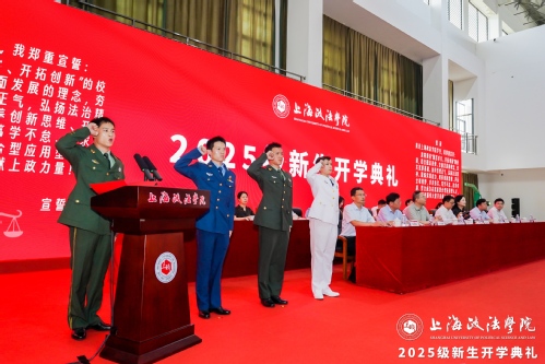 今年是中国人民抗日战争暨世界反法西斯战争胜利80周年,上政学子亦要弘扬抗战精神,勇担时代重任。退伍大学生士兵代表、校军魂团团长张海洋带领全体新生集体宣誓:“求真务实、笃学不怠、追求卓越,为中华民族伟大复兴贡献上政力量!”