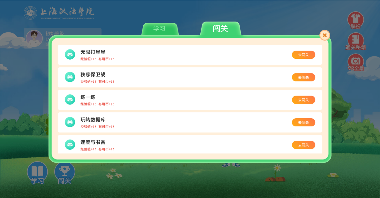 3.点击学习按钮开始图书馆的学习啦,每学习完一个章节会解锁一个游戏关卡,学习和闯关都会获得相应的布可币和经验值。闯关游戏中会有试题的出现,请同学们认真作答,答对的题目越多获得的布可币就会越多哦~