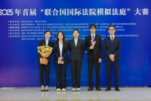 在近日圆满落幕的2025年首届“联合国国际法院模拟法庭”大赛中,我校代表队表现卓越,一举夺得全国团体赛亚军,并荣获最佳书状奖、优秀指导教师奖、优秀组织单位奖,另有1名选手获评优秀辩手。