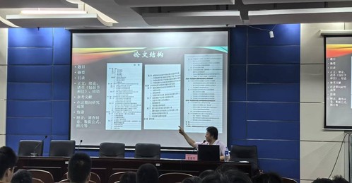 夏国军将团课内容分为精准架构、聚焦创新、思辨指引三个部分。首先,夏国军强调,论文题目要生动有新意,要言之有物也要大小适度;其次,夏国军指出,写论文要找到文献综述与创新点之间的平衡,既要合理分析学术界已有研究也要站在巨人肩膀上做学问;最后,夏国军强调,学术写作是知识生产中的艰难建构,研究者需在众多文献中综合提炼,将模糊概念变成清晰的结构框架,并使论证环环相扣,符合学术规范,这一过程如同在未知中勘探,最终使内隐的思辨被提炼为严谨的文本。