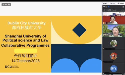 10月14日下午,由我校国际交流处主办的“海外讲坛”第146期——“都柏林城市大学学习生活分享介绍”讲座成功举行。本次讲座邀请了爱尔兰都柏林城市大学国际处中国区项目主任王晓侠担任主讲嘉宾,我校法学、管理学、新闻学等多个专业的学生在线参加。讲座由国际交流处刘灵主持。