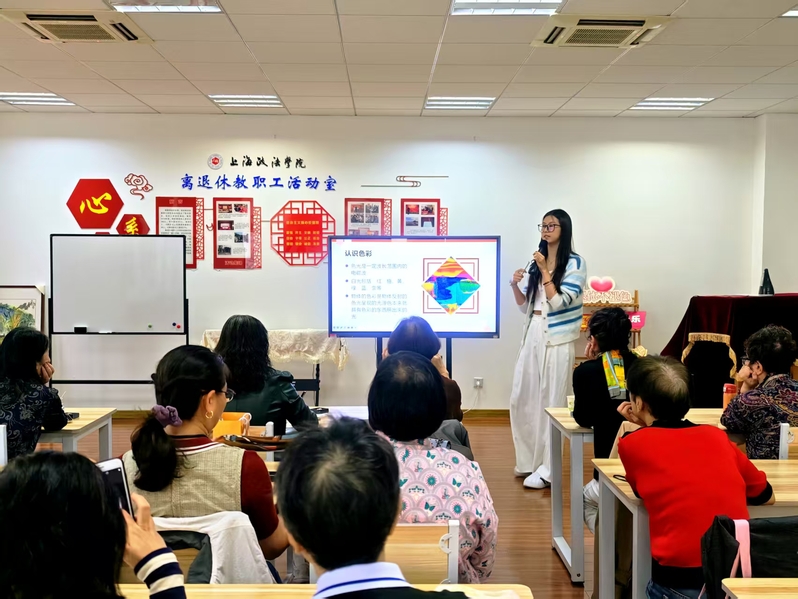 为丰富退休教职工的精神文化生活,满足大家在日常社交和文艺活动中的形象需求,助力大家通过科学穿搭彰显优雅气质、提升社会活动参与的自信心与表现力,离退办于10月21日特别邀请了上海老年大学东华大学分校的王晟旭老师,举办了《服饰搭配》与《形体表演》专题讲座。