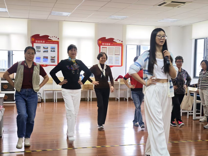 针对退休职工合唱团老师们的舞台表演需求,离退办还请王晟旭老师从专业角度进行深入讲解,详细阐述了舞台仪态规范、动作表达技巧以及服装与舞台场景的适配要点,为老师们后续参与文艺活动提供了宝贵的专业建议。在随后的体验环节,老同志们积极参与,跟随王老师认真练习舞台走步技巧,沉浸式地感受形体表演的独特魅力,充分展现了别样的“模特风采”。