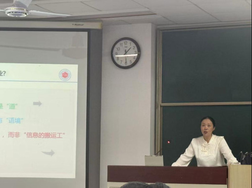 在“AI盛行的时代,我们为何还要以英语为专业?”这一部分中,陆月华老师指出,人工智能虽然在信息处理和语言转换方面效率卓越,却无法替代人类语言的温度、文化的深度与思想的锐度。她强调,语言不仅是交流的“器”,更是思维的“道”。AI可以翻译“绿水青山就是金山银山”的字面意思,却难以传递其背后蕴含的中国发展哲学与文化内涵。真正的沟通,离不开对语境的把握、对情感的体察、对文化差异的洞察——这些正是英语专业学生的核心优势。“我们不是要成为比AI更快的‘翻译机’,而是要成为AI无法替代的‘文化摆渡人’和‘思想交流的桥梁’。”