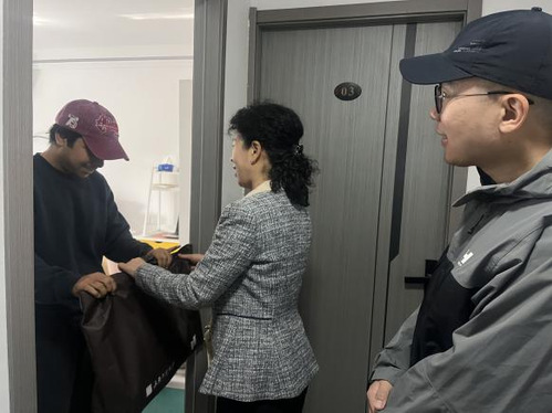 为深入了解在校外住宿留学生的实际生活状况,加强对留学生的关怀与管理,2025年10月17日上午,学院党委书记姚善英、学生工作负责人杨铠率领留学生辅导员吕静怡、魏宇凡、苏力旦江·帕塔尔,共同前往留学生校外住宿点,亲切慰问了来自俄罗斯、阿富汗等国的3名留学生代表。