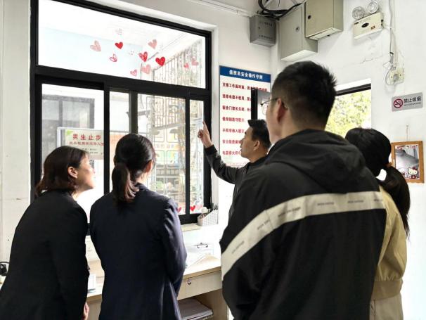 在学生社区,学院老师们一同走进学生社区,与宿管阿姨以及学生代表进行交流,了解学院学生的寝室日常管理及社区安全情况,尤其是近期宿舍用电安全、室内卫生维护及晚归离校登记等关键信息,并对尚需改进之处进行了详细记录,依据社区反映情况以及社区管理规章制度在后续向全院学生展开教育监督。