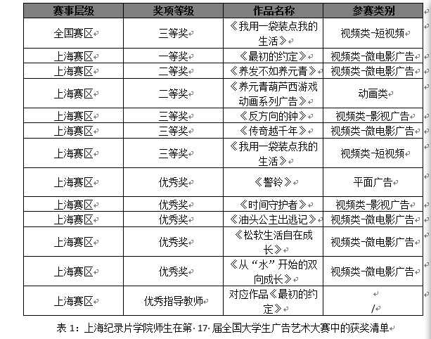 2025年,第17届全国大学生广告艺术大赛(简称“大广赛”)落下帷幕,各级奖项名单正式公布。新利18官方客服上海纪录片学院师生凭借扎实的纪实影像创作功底与鲜活的广告创意思维,在上海赛区乃至全国赛区共摘得13项大奖。其中,全国赛区三等奖1项,上海赛区一等奖1项、二等奖2项、三等奖3项、优秀奖5项;指导教师施洲、王腾飞共同荣获上海赛区“优秀指导教师”称号,印证了学院“纪实+创意”的特色教学成效。