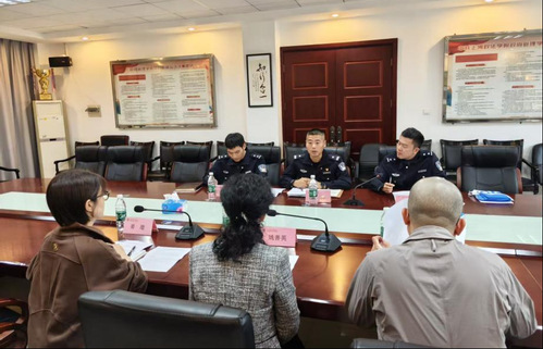 座谈会上,姚善英首先介绍了学院基本情况、人才培养成果及近年毕业生就业情况,希望通过与戒毒所合作落地相关举措。上海市崧泽强制隔离戒毒所宣传大队教导员唐冲警官详细介绍了单位基本情况及人才需求,重点推介管理岗、行政协调岗等岗位招聘计划,为政管学子就业提供支持,并邀请政管学子出演戒毒情景剧。