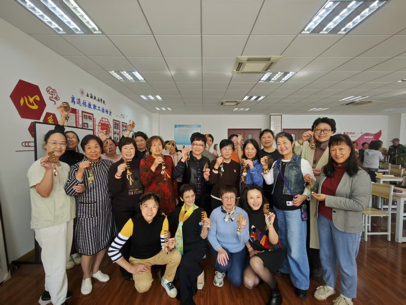 手工体验:巧手匠心传承非遗。10月28日上午,普陀校区活动室内洋溢着浓浓的学习热情。在非遗手工制作活动中,老同志们亲手制作宋锦挂饰与绿檀木按摩梳。在专业老师指导下,大家细心穿针引线,精心打磨木梳,在动手实践中感受传统工艺的魅力。一件件精美作品的诞生,不仅让老同志们收获了成就感,更让非遗文化在指尖传承。