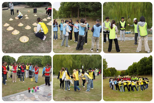 随后,一系列精心设计的团队挑战项目依次展开。“水果连连看”考验着队员们的记忆与策略沟通能力,各组成员需要通过有效的信息共享与默契配合,以最短时间完成配对,现场气氛紧张而热烈。紧接着的“挑战300秒”将活动推向高潮,该环节由五个连贯的小项目组成,要求团队在无缝衔接中完成挑战,不仅是对队员个人能力的检验,更是对团队统筹规划、高效执行与坚韧毅力的综合考验。同学们在一次次尝试与调整中,深刻体会到信任、责任与集体智慧的力量。