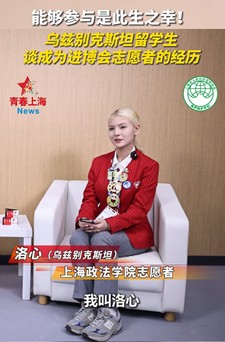 来自“一带一路”共建国家乌兹别克斯坦的留学生洛心,凭借对中、英、俄、乌兹别克四国语言文化的深刻理解与鲜活体验,接受央视新闻采访1次,澎湃新闻采访2次以及青春上海专访,以留学生视角讲述跨文化交流的温度与力量,展现了属于上政“小叶子”的亮眼风采。