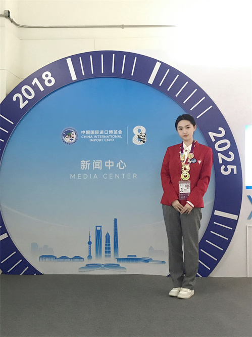 马天翊所在岗位是在新闻中心展商活动区,核心负责现场秩序维护与活动预约咨询解答;因毗邻中医推拿馆,她同时承担该馆预约事宜的引导工作。工作期间,她遇到一位希望体验中医推拿的尼泊尔籍记者,语言障碍成为主要难题。马天翊立即响应中医馆医生的需求,临时充当起跨语言沟通桥梁——不仅精准翻译双方对话,还协助医生完成外籍友人的症状问询。当听到外籍友人们对中医技艺的由衷赞叹时,马天翊为能服务记者群体、传递中华文化感到荣幸,更真切体会到“小叶子”志愿精神的内涵:它不仅是坚守岗位的责任,是主动补位的灵活,更是以微小力量搭建连接、传递温暖的担当,让志愿服务在保障进博、沟通中外中真正发光发热。