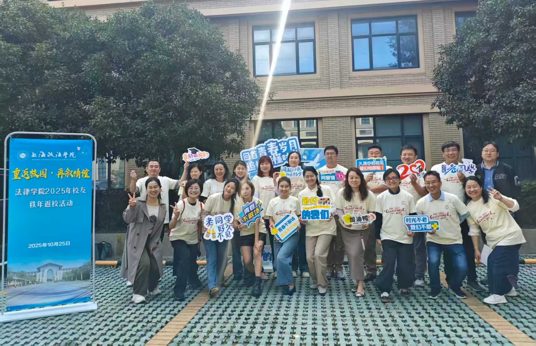 法律学院(调解学院)聚焦2005届毕业二十周年校友,于10月25日举办“重返校园・再叙情谊——敬我们可爱的大学时光”主题活动。校友们重走当年的校园足迹,在教学楼前、图书馆旁打卡合影,唤醒青春记忆。