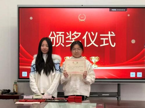 在热烈的掌声中,颁奖环节正式开始。首先颁发的是三等奖,获奖者杨青兰、廖静怡同学依次上台,接受荣誉。随后,二等奖获得者马音佳、胡绚文、李宛娴同学登台领奖。最后,全场以掌声祝贺一等奖获得者黄雅雯同学。林采琪老师为获奖同学颁发了证书,并合影留念。