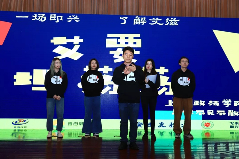 有我校学生加入的“飞来即兴”表演团队进行了防艾即兴剧《艾要坦荡荡》演出,与同学们积极互动,通过热身游戏、现场说词、即兴表演等互动环节,多层次、多角度的介绍了艾滋病的相关知识,使青年学子对艾滋病的相关知识有了更加生动深刻的了解。