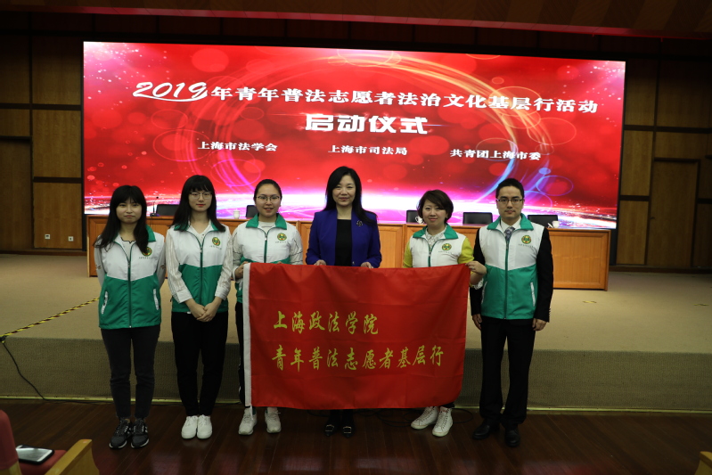 428日上午,由中国法学会、司法部、共青团中央共同主办的“2019年青年普法志愿者法治文化基层行活动启动仪式”在北京人民大会堂举行。按照中国法学会统一部署,上海市法学会会同市司法局、共青团上海市委在华东政法大学同步举行上海2019年青年普法志愿者法治文化基层行活动启动仪式。市法学会党组书记、会长崔亚东同志出席启动仪式,向上海青年普法志愿者代表授旗并讲话。我校青年志愿者代表及指导老师应邀与会。