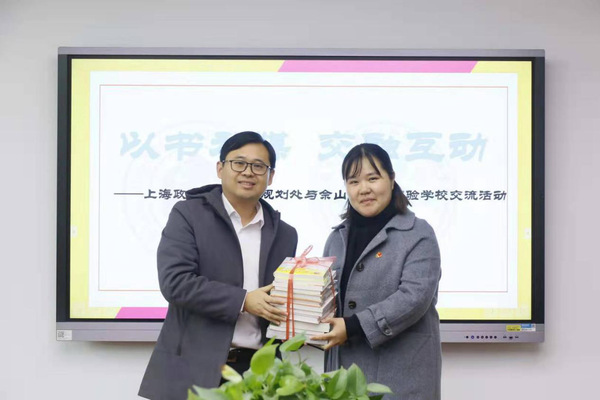 发展规划处党支部向佘山外国语实验学校赠送了书籍,并就学校课程建设、资源共享等问题与佘山外国语学院教师进行了交流和研讨。