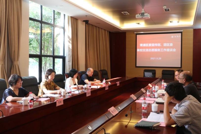 在距离第四届进博会开幕35天之际,9月29日上午,青浦区委宣传部副部长、区文明办主任吴建英,团区委书记叶丽君一行来校交流进博会城市文明青年志愿者工作。校党委副书记刘刚会见了吴建英一行,学校办公室、学生工作部、校团委负责同志参加会见和座谈交流。