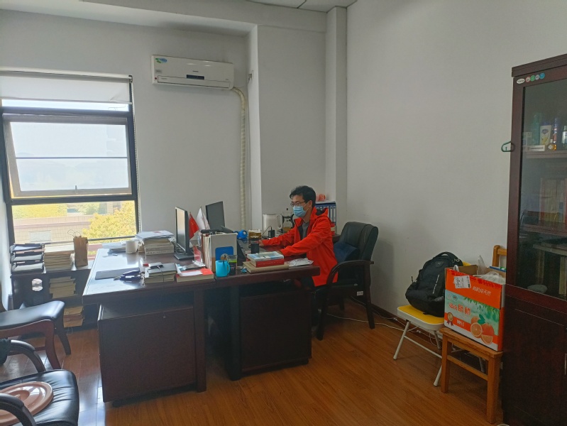 储德峰老师作为党总支副书记,积极发挥模范带头作用,投入到学校疫情防控工作中去。为了防疫工作的顺利进行,他已经近一个月未曾回家,在学校当起了“大白”,尽管每天仅有几个小时的休息时间,他依旧毫无怨言,尽心尽力的完成自己的工作。