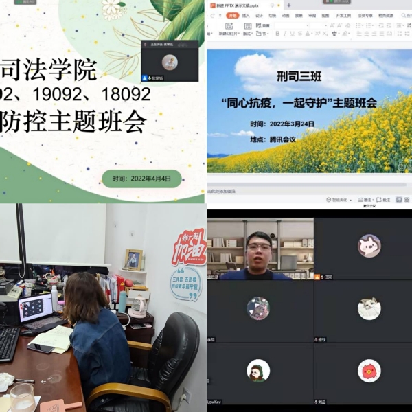 疫情之下,校园实行准封闭管理,在学院党政班子的领导下,刑司师生“云”端相聚,一同投入这场抗疫“阻击战”。校外老师与校内值班老师共配合,通过线上线下组合拳,开设五彩祥“云”空间,多错并举,为校园内外的学生安全、健康的战“疫”生活用心守护、用情服务。