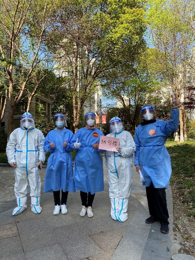 学生党支部书记潘婕,按学院党总支的要求,立即通过“先锋上海”小程序,向所在地的居民区支部委员会报到并积极投身防疫工作。多次参与社区核酸检测、上门发放抗原自测试剂、社区物资搬运等工作。