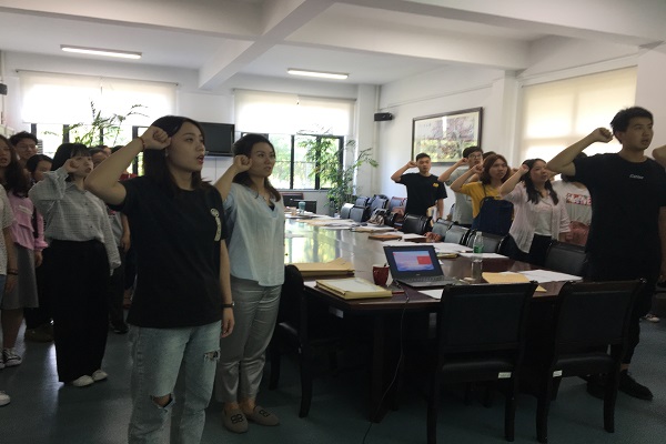 会议最后,支部全体党员在支部副书记郑菁的带领下面向党旗重温入党誓词通过这次主题教育,支部全体党员更加深刻领会了入党时的铮铮誓言,更加牢记了自己的初心与使命。(杨朝森撰稿 刘凡赫、孙雨钘摄影)