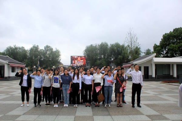 到达纪念馆后,大家整齐列队,在伟大的无产阶级革命家、政治家陈云同志铜像前,面向鲜艳的党旗,庄严地宣读入党誓词。在这神圣的时刻,每位党员慷慨激昂的宣誓声,坚定的眼神,彰显着他们为共产主义奋斗终身的决心。
