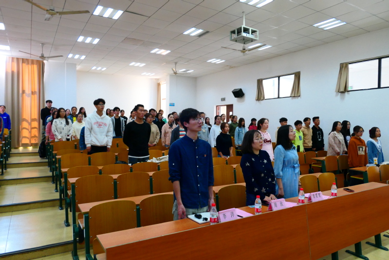 11月1日中午,语言文化学院分党校2019年学生党建理论培训班结业典礼在A8-101举行。学院党总支副书记周欣、专职组织员尚媛媛、学生支部书记李洋及全体培训班学员参加大会。