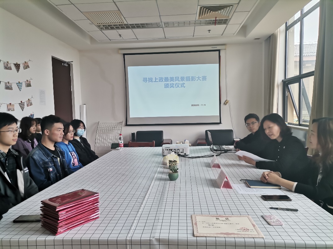 11月19日中午,图书馆在315活动室举办“寻找上政最美的风景”摄影比赛颁奖活动。参考咨询部主任王瑛老师出席,获奖师生和上政阅协的同学们一起参加了会议,会议由李月华老师主持。