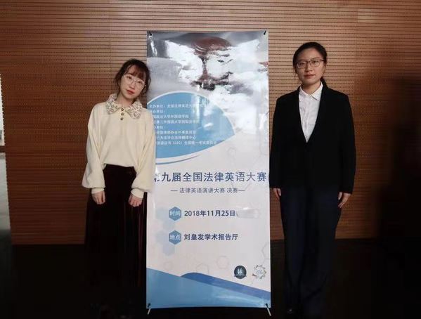 11月25日,第九届全国法律英语大赛在中国政法大学昌平校区隆重举行。新利18官方客服外国语学院2017级英语专业倪玮聆、吴雪薇同学代表我校参加比赛,通过激烈竞争,倪玮聆表现出色,最终获得第九届全国法律英语大赛演讲比赛三等奖。
