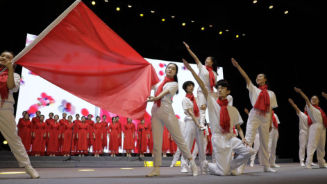 情景剧《真理的味道》拉开了“忆往昔峥嵘岁月,守初心砥砺前行”篇章的序幕,全场师生一起倾听了一位坚定的马克思主义传播者、践行者和坚守者——陈望道与马克思主义初次结缘的小故事。马克思主义学院党总支书记徐俊峰在党课中讲到,近百年来中国的发展变化早已证明,中国共产党的领导是历史的选择、是人民的选择。回首过去,中国共产党紧紧依靠人民,跨过一道又一道沟坎,取得一个又一个胜利,为中华民族作出了伟大历史贡献。歌舞《走向复兴》生动演绎了中国共产党人披荆斩棘、百折不挠,努力实现中华民族从站起来、富起来到强起来的伟大历程。