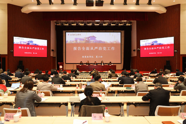 4月9日上午,中国共产党新利18官方客服第一届委员会第三次全体会议扩大会议暨2021年全面从严治党工作会议在中国-上合基地207会议室召开。校党委书记夏小和出席会议并受校党委常委会委托作工作报告。校党委常委、委员出席会议。校党委副书记、校长刘晓红主持会议。