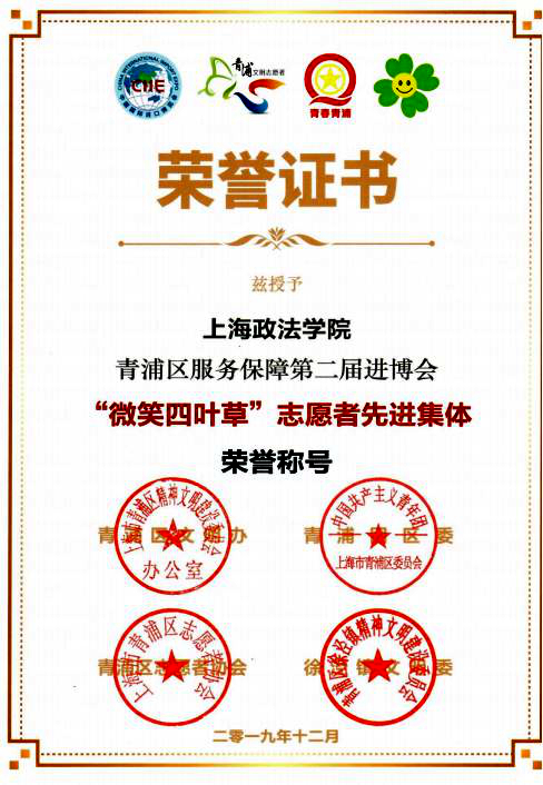 2019年第二届中国国际进口博览会已经圆满结束,为服务好青浦区家门口的盛会,我校共招募、培训、供给了284名进博会青浦城市文明志愿者,上政“微笑四叶草”志愿者们以最好的形象,最饱满的热情,最温暖的服务,奋战在进博会志愿服务第一线,用实际行动充分诠释和发扬了“奉献、友爱、互助、进步”的志愿精神,在服务的过程中认识国家发展、实现自我成长,理解时代使命。