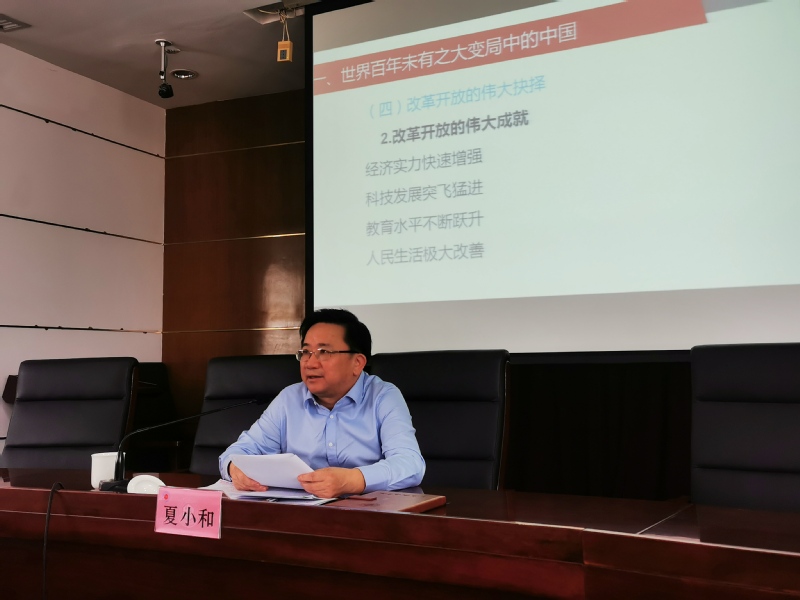 夏小和从习近平总书记提出“世界处于百年未有之大变局”的重大论断开始,系统梳理了中国共产党成立100年来,带领中国人民在各个阶段取得的伟大胜利和伟大成就,引用大量鲜活的故事和精准的数据,为同学们描述了中国在经济、教育、科技和人民生活方式等方面发生的翻天覆地的变化,强调了中国在推动形成世界百年未有之大变局中发挥的重要作用,详细阐述了世界百年未有之大变局下中国与世界的关系。