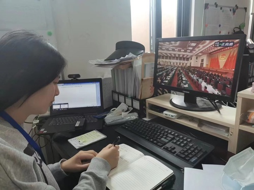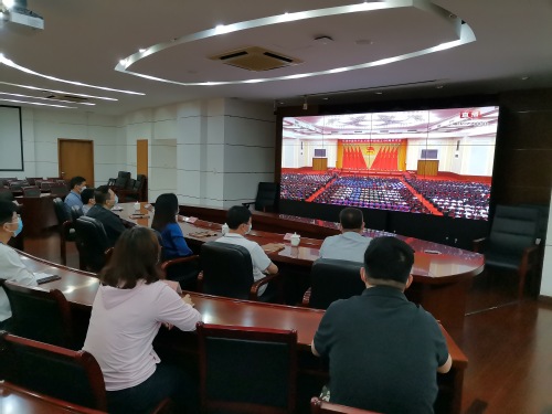校长刘晓红,校党委副书记、纪委书记、监察专员潘牧天,校党委副书记刘刚及相关职能部门负责人、各学院分管学生工作负责人在求实楼513会议室集体收看。我校各级团学组织在线集中收看,第一时间学习了习近平总书记的重要讲话精神,深刻领悟习近平总书记对共青团组织、青年的希望和要求。