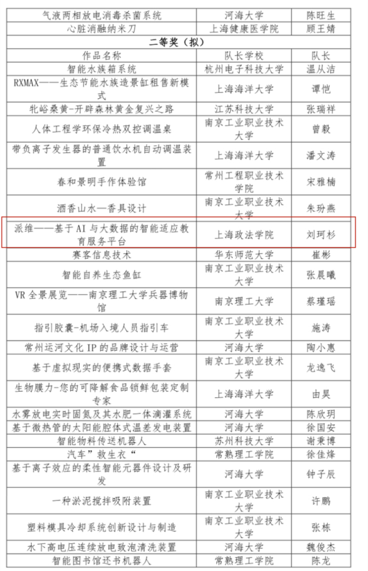 10月18日,由教育部创新创业教育指导委员会、教育部创新方法教学指导分委员会、北京大学主办的,并由南京理工大学承办的第十四届iCAN国际创新创业大赛江浙沪赛区比赛决出了各项名次,我校代表队获得二等奖并晋级国家赛。