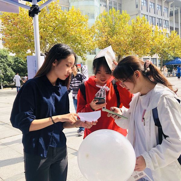 费静怡回忆自己的大学生活,最难忘的还是自己与禁毒志愿者协会的小伙伴们一起为禁毒事业拼搏的美好时光。矢志服务志愿同行,我们会一直奉献自己的热情,共建无毒美好未来!”费静怡表示,作为法科学生应当做到眼中有家国,心中有人民。根据《2021年中国毒品形势报告》显示,35岁以下青少年占在册吸毒人员总数的57.1%,毒品其实近在你我身边,禁毒宣传教育是青年人应当承担起的时代责任。“即使前路充满艰难险阻,我们也会坚持着一路向前走,这是我们青年人对时代责任的回应。”