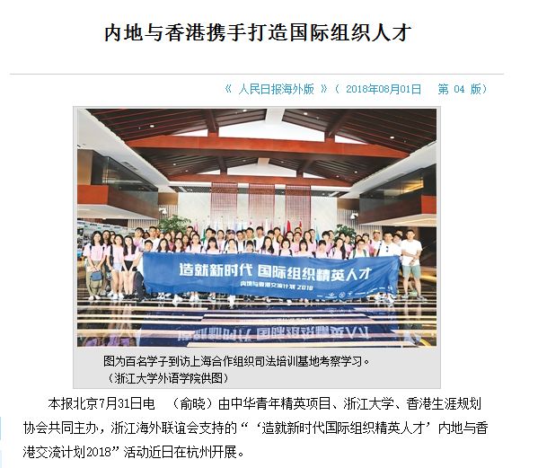 站在新时代的潮头浪尖,随着中国在国际组织中话语权与地位的提升,亟需代表国家未来的青年人在更高的舞台提出中国方案,发出中国声音。浙江大学作为改革开放的排头兵,亦是国家为国际组织输送青年人才的前哨站,外国语言文化与国际交流学院“国际组织精英人才培养计划”(国精班)与有志于发掘具有国际竞争力的复合创新型人才的中华青年基金会合作,与香港生涯规划协会携手,筹划了此次内地与香港的交流计划。