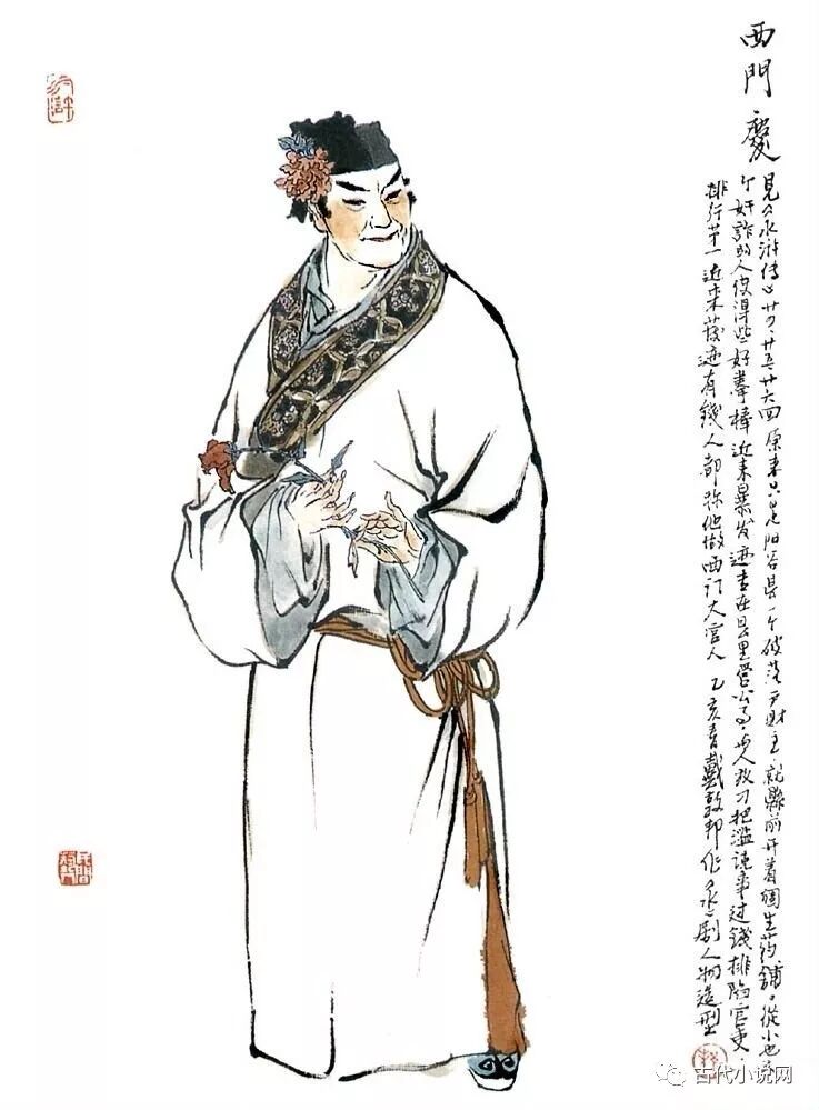 第四、附庸风雅、市井俗流。商人暴富便要附庸风雅,这几乎是一个通例,西门庆也不例外。那把西门庆出场便摇着的洒金川扇儿即是其附庸风雅的道具,也使得其形象迥然有别于《水浒传》里的西门庆。