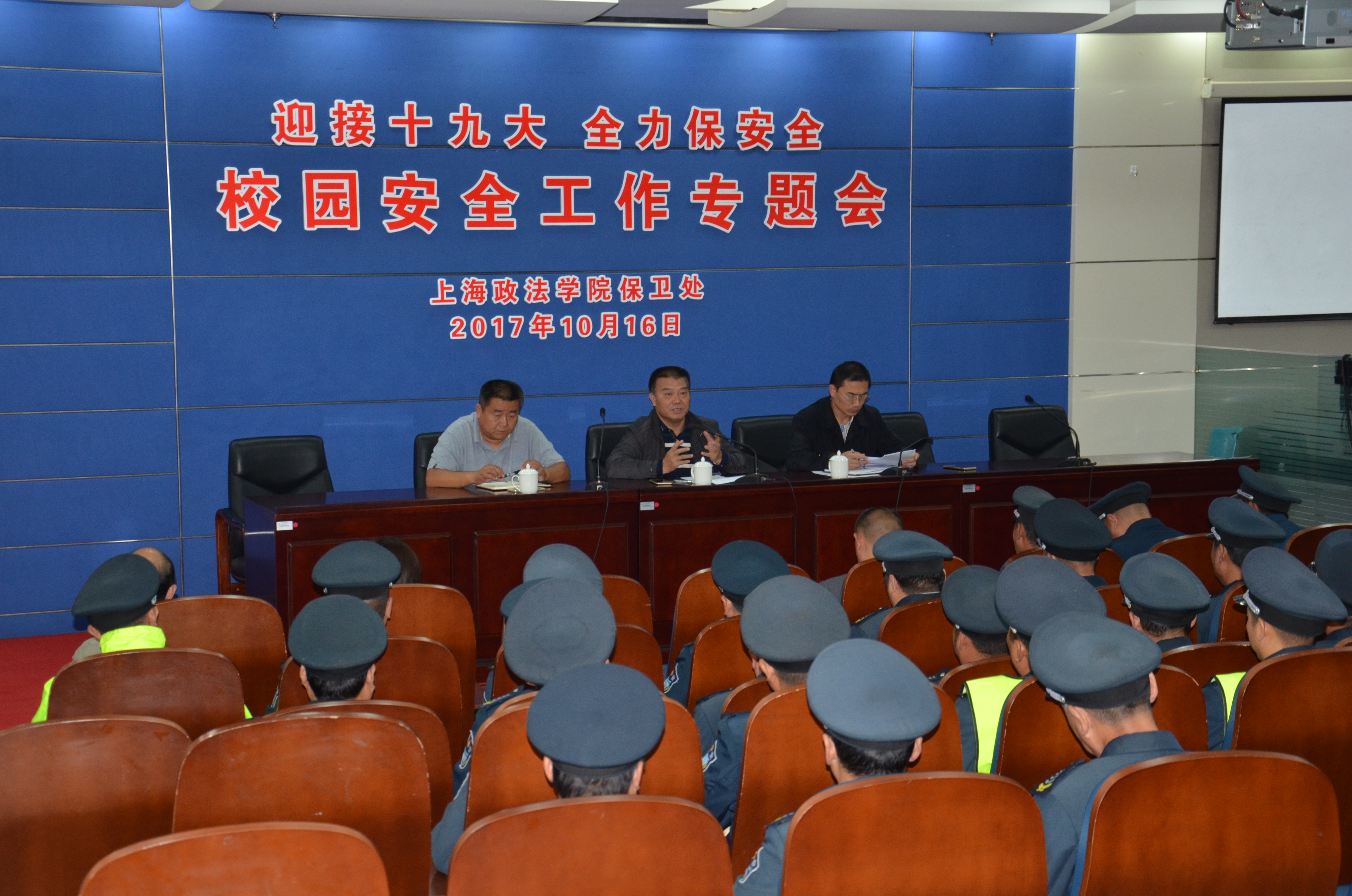 10月16日上午,保卫处在庸夫楼112会议室召开主题为“迎接十九大全力保安全”的校园安全工作专题会议。保卫处全体工作人员、安保人员参加了会议。