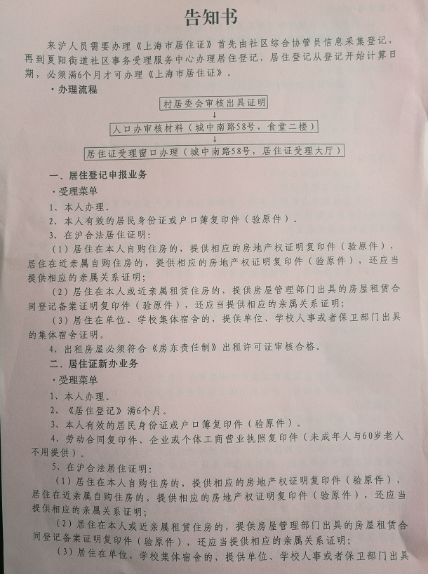 第三步:至夏阳街道社区事务受理服务中心办理居住证申报登记