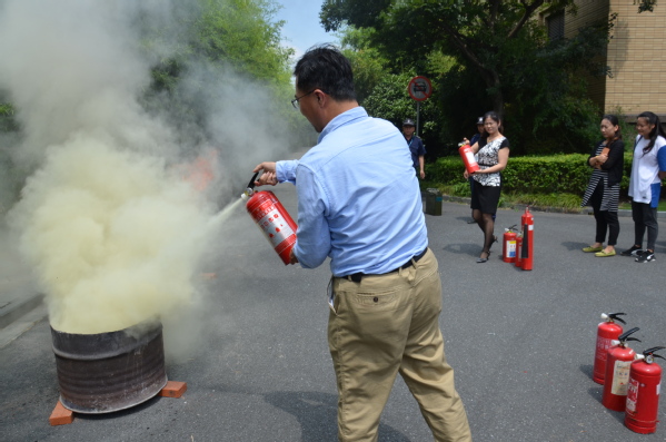 演练开始前,保卫处消防工作人员就灭火器类型、使用场合、正确使用方法、步骤及注意事项等进行了现场讲解,带领全体职工熟悉全馆消防路线与消防通道。在图书案广场空地前,依次示范、指导图书馆职工亲身体验各种灭火器的操作,帮助大家掌握火灾初期处置的基本要领和方法,现场的教职工们表现认真,积极参与,操作方法正确,活动效果良好。