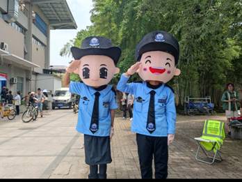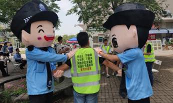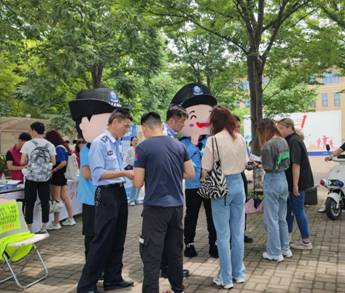 活动现场最引人注目的就是可爱的“警察”同志。两名志愿者不顾天气炎热,本着志愿者无私奉献的精神,主动申请穿着人偶服进行活动宣传,在现场与参加活动的同学们进行互动。