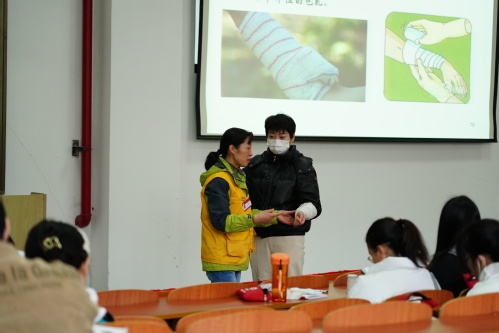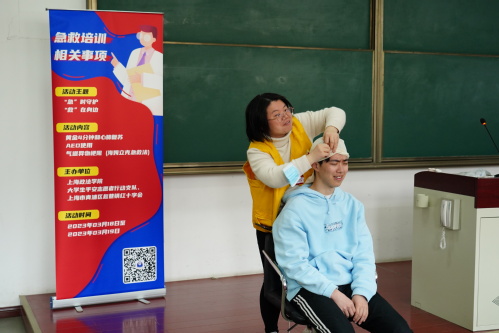 为加强大学生应急救护知识学习,提高学生自救互救能力,3月18日,保卫处邀请青浦区赵巷镇红十字会的老师为我校平安志愿者支队学生开展了一场急救培训活动。