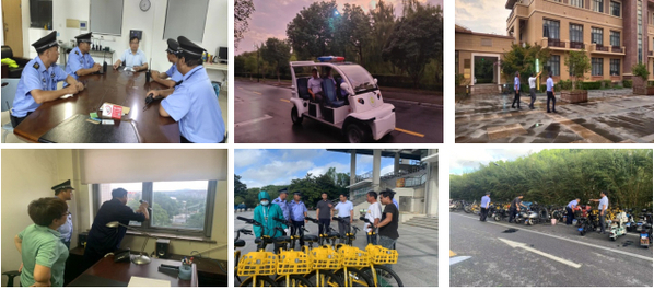 保卫处根据市教委下发的《关于加强“贝碧嘉”台风期间校园安全工作的提示》精神,于9月14日下午召开专题会议,就做好台风期间校园安全防范工作进行研究部署,开展了校园安全隐患大排查;9月15日组织安保力量对校园重点目标和重要部位进行了督查,对没有落实到位的相关事项协调职能部门进行快速处置;对台风期间保卫处值班和校园安保值守进行了重点加强,并落实全天候全时空的校园全方位巡查巡屏,安排保安应急队伍随时待命,及时应对各类突发状况。在台风期间,保卫处部门领导、保安公司相关负责人带领校园安保人员全程值守,落实分组分区域不间断巡查和全程值守制度,随时掌握通报校园安全情况,认真做好校园安全防范提示,快速协调处置各类情况;在台风后,主动协同相关部门开展校园环境整理和秩序恢复工作,确保了相关防范措施落细落实。